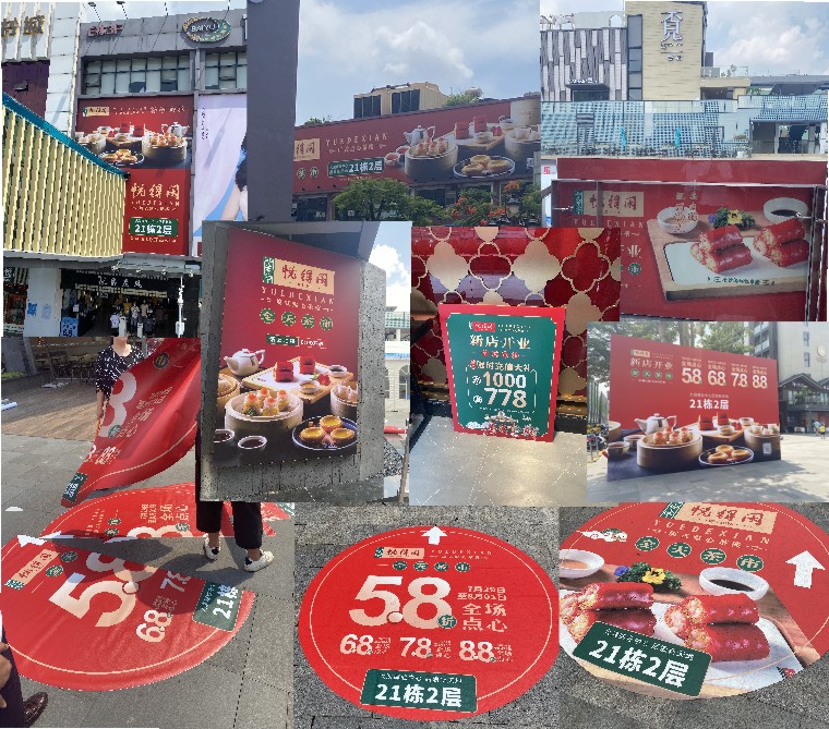 所有能做的觸點(diǎn)出發(fā)如:MALL(商場門口品牌墻、商場戶外廣告、地貼、電梯、樓層導(dǎo)視、電梯內(nèi)廣告、扶梯、吊旗、包柱、燈箱、墻體海報(bào)、刀旗、吊幔),網(wǎng)絡(luò)(大眾點(diǎn)評、微信、微博、頭條、抖音、小紅書、網(wǎng)站),大眾媒體(公交廣告、地鐵廣告、運(yùn)貨車、電梯廣告)等等進(jìn)行宣傳推廣,讓更多潛在客戶看到知道形成品牌記憶。