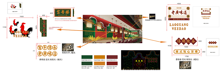 寶粵樓的VI體系,包含了品牌的LOGO標(biāo)志圖形,品牌主色調(diào),店內(nèi)日常運(yùn)營的物料系統(tǒng),導(dǎo)視系統(tǒng),推廣廣告系統(tǒng)等幾個方面。