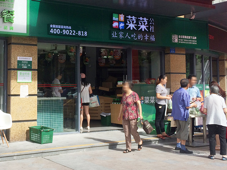 實(shí)際上,品牌就是消費(fèi)者和企業(yè)簽署的一紙無(wú)形的社會(huì)契約,我選擇相信你,你向我提供品質(zhì)擔(dān)保。如:菜菜公社的門(mén)頭設(shè)計(jì),品深設(shè)計(jì)設(shè)計(jì)師在門(mén)頭下方加入金谷園集團(tuán)旗下品牌+26屆深圳大運(yùn)會(huì)餐飲主服務(wù)商等品牌信息,立刻讓消費(fèi)者對(duì)菜菜鮮語(yǔ)品牌產(chǎn)生了好感。