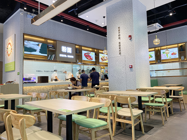 匯鈺二食堂在空間大面積使用水磨石飾面板,整體明亮清新,自然,富有文藝氣息,完美實現了消費者對更高品質、更純味道、更好生活的要求。