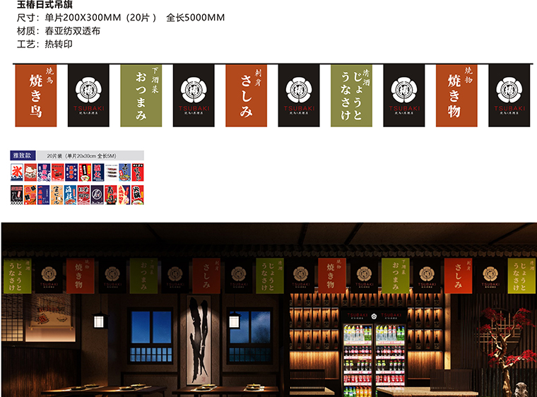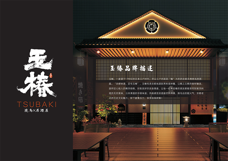 品牌記憶點:日本京都風格門頭設計+玉椿標識及家徽+燒鳥手繪畫面+四大主色調。