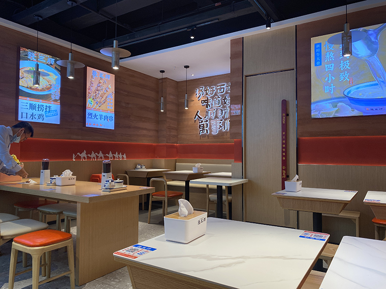 4、品深設計認為,面館本質上與簡餐是一樣的,顧客就是在簡餐和面館之間切換口味而已,所以我們在門店內部沒有過多展示品牌的文化。更多是推廣品牌、推廣產品,圖文并茂直接講清楚,饸饹面是一種什么面食?錢三順是怎么來的?錢三順的核心賣點是什么?我們主推哪些產品等等。